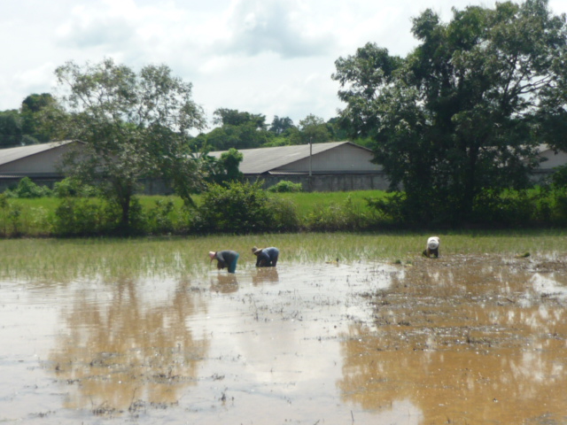 今回のThai紀行は、完全プライベートだが、少し、仕事じみた ことも活動してきました。前々から私が関わりをもたせていた だいているバンコクから東に150kmのところにあるプラチンブリー県 プラジャンタカーム郡のドンバン町とポーガム町にも行って来ました。 ドンバン町に行く途中、田植えをしておられたので、シャッターを 押しました。 |